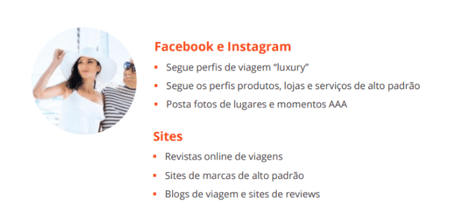 Em 2022, realizamos um trabalho de estratégia de presença digital para a Marina de Cascais, em Portugal, onde identificamos como uma das principais personas a “Camilla”, que representa o turista altamente qualificado.