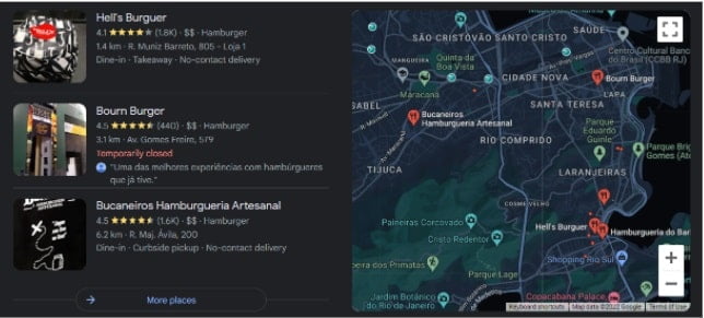 A relevância está ligada à proximidade da empresa com a consulta do pesquisador. Você pode ver e entender esse algoritmo funcionando quando você busca “melhores hambúrgueres”, por exemplo. A relevância é a alma do algoritmo local do Google.
