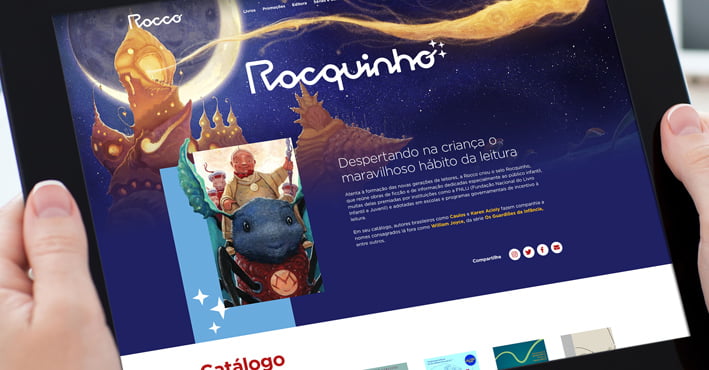 A Aldeia foi responsável pela arquitetura de informação, design e programação do novo site da Editora Rocco. Em relação ao projeto anterior, o site apresenta uma proposta estética e de estrutura mais moderna e ousada, com a inserção de carrosséis temáticos por coleção e autor.