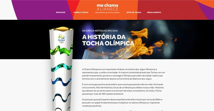 Desenvolvemos um hotsite para a realização do concurso, onde os colaboradores participavam enviando suas mensagens, além de terem acesso ao regulamento e informações sobre o evento de revezamento da Tocha Olímpica.