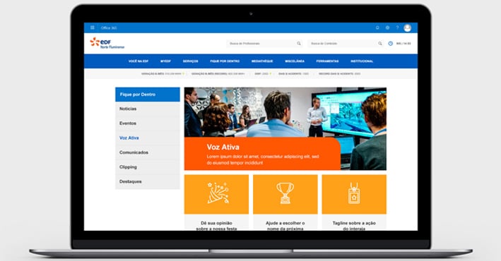Em maio de 2018, iniciamos o contrato de manutenção evolutiva da intranet da empresa, desenvolvida em SharePoint, com o objetivo de dar suporte na resolução de eventuais problemas e na elaboração de novas funcionalidades. O modelo escolhido foi o banco de horas, com a disponibilização de um desenvolvedor SharePoint, um front-end, um gerente de projetos e um designer.