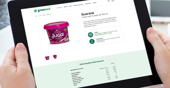 Desenvolvemos o site com um design simples, leve e amigável, que traduz a essência de uma empresa sustentável e positiva. Nessa plataforma, os fornecedores podem se cadastrar e comprar todos os produtos representados pela Green Soul.