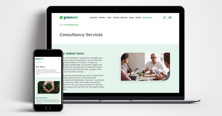 Criamos o site da Greensoul, uma trading canadense que vende produtos brasileiros para consumidores e revendedores das cidades de Montreal e Toronto.